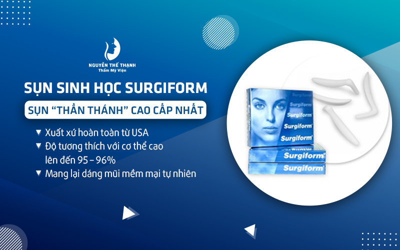 Chất liệu sụn Surgiform còn có độ bền và dẻo hơn nhiều so với các loại chất liệu độn thông thường khác. Đặc biệt, những bạn có chiếc mũi chưa được ưng ý như gãy hay tẹt thì áp dụng phương pháp nâng mũi siêu cấu trúc Surgiform giúp biến hình xinh đẹp khác biệt, khuôn mặt được cải thiện lớn khi nâng sống mũi cao lên.